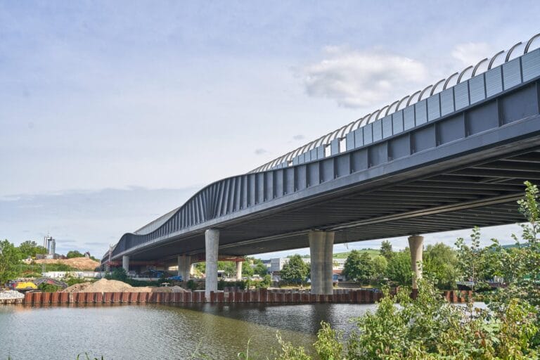 Projektbeschreibung: Baustellenfotos des Neubaus der Autobahnbrücke in Heilbronn